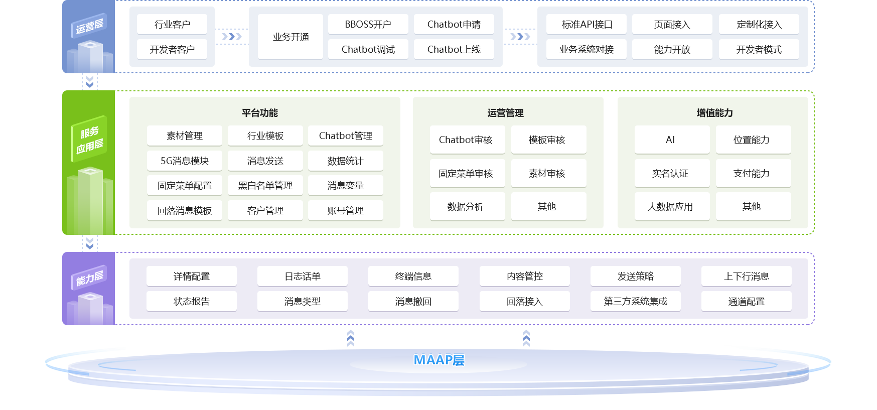 中国移动,中国联通,中国电信等三家运营商的5G消息MAAP层,实现一键发送三网5G消息的能力